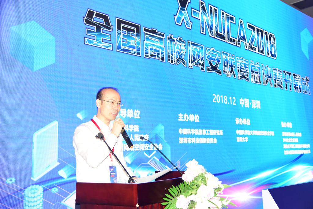 12月5日上午,第三届全国高校网安联赛(简称X-NUCA’2018)总决赛开幕式在我校南校区L4报告厅举行。X-NUCA’2018由中国科学院、深圳市人民政府、中国网络空间安全协会联合指导,中国科学院信息工程研究所、深圳市科技创新委员会合作主办,中国科学院大学网络空间安全学院、vsport共同承办,深圳市南山区人民政府、360企业安全集团、湖南合天智汇信息技术有限公司、北京永信至诚科技股份有限公司协办。中国网络空间安全协会副秘书长赵宏志,中国科学院信息工程研究所主任刘宝旭,深圳市科技创新委员会陈庆云处长,我校副校长王晖以及相关领导嘉宾、各高校专家学者、指导老师、参赛选手参加了此次开幕式。本次开幕式由刘宝旭主持。