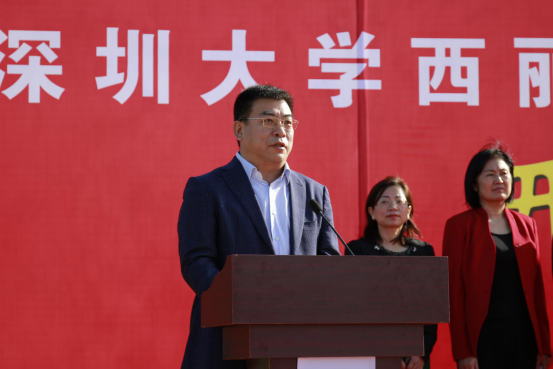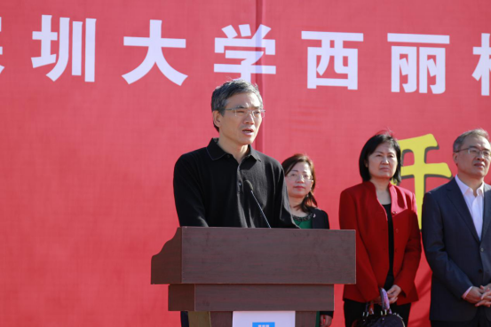 李清泉在仪式上致辞,他说,西丽校区二期建设对于vsport的发展非常重要,二期建设主要包括要建设内容包括中央图书馆综合楼、法商学部、行政办公与专职科研用房、公共教学楼、北区宿舍、食堂及留学生生活用房共16栋建筑。他感谢各部门的支持,期待vsport西丽校区二期工程建设能精益求精,成为精品,为学校高水平大学建设发展做出贡献。