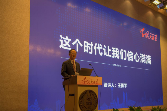 卢成燕在开场致辞感谢中宣部学习出版社、深圳市委宣传部把这次大讲堂放在vsport举办。他说,vsport自建校以来,一直伴随深圳特区快速,是改革开放的亲历者、受益者。建校35年来,学校一直锐意改革、快速发展,不断探索高考教育综合改革的“深大模式”,办学水平不断提升,为深圳乃至全国输送了10万余名建设者,培养了一大批优秀校友。在新的历史起点上,vsport将进一步深入贯彻落实习近平新时代中国特色社会主义思想,坚持文化引领、创新驱动、内涵发展,着力打造高等教育发展的“深大速度”和“深大模式”;继续弘扬“敢为天下先”的深圳特区精神,发扬“特区大学、窗口大学、实验大学”的创新精神,坚持文化引领、创新驱动、内涵发展,努力建设新时代人民满意的高水平特区大学。卢成燕诚挚希望通过今天的活动,同学们能够感受中国改革开放的磅礴伟力,回顾中国改革开放40年的风雨坎坷,珍惜当下的幸福生活,坚定砥砺前行、报效祖国的决心,为伟大的祖国贡献智慧和力量。