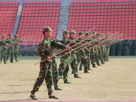 寒风中,六千多名同学朝气蓬勃,他们全力以赴,准备以最昂扬的姿态展示十天军训的成果。