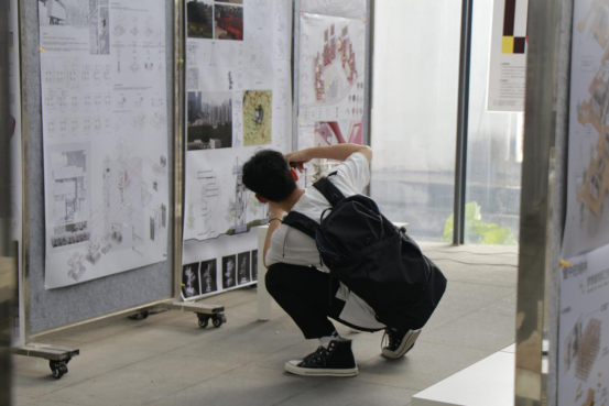 在众多展览中,纵向组优秀作业展最引人注目。今年建筑与城市规划学院针对高年级首次以纵向组为单位布展,不仅展示了建筑专业的一系列设计和构想,还有城规专业多元精彩的以小组合作的大体量模型作品。其中,以建筑与自然和谐为主题的多种模型作品,有的将自然引入建筑,使人进入此处仿佛在树林之中;有的将自然中的树、风、光等元素融入设计理念中,以使建筑与自然和谐共存。在城市综合体这一主题下,建筑与城市规划学院的学生展开了多种设计理念,有的创造丰富空间体检,将城市绿化与景观引入建筑,增加交流与活力;有的将建筑功能多样化,使建筑成为办公和商业的综合体。深圳湾美术馆、南山图书馆改造设计、文化创意产业园等设计作品展示了学生对于大体量建筑和大面积区域规划的想法和构思,设计之灵动,细节之完善,让人啧啧惊叹。同时,美术课优秀作业展显示出同学们对于色彩的理解和对城中村主题的思考,绘画设计比赛作品展体现出同学将“致敬包豪斯一百周年”的理念融入绘画,匠心独运。GIE优秀作业展、Studio课程作业展、研究生优秀作业展、童享建筑优秀作品展等展览也吸引了众多同学和外界人士的关注,他们流连驻足,既了解了建筑设计师的风格理念,也了解了建筑文化背后的深刻意义。