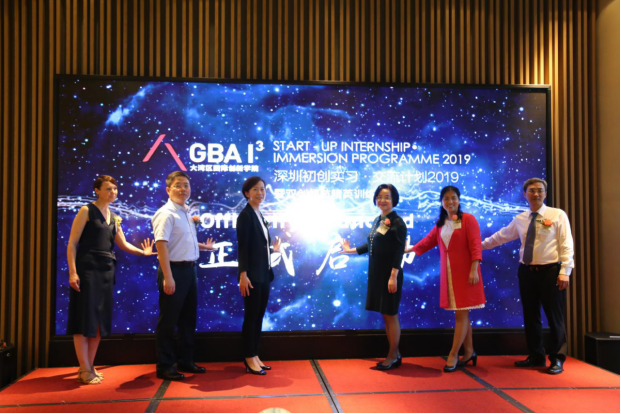 5月26日,由大湾区国际创新学院主办的首届双创领航精英训练营在深圳正式启动。该项目是教育部2019年港澳与内地高校师生交流计划的立项资助项目。深圳市科创委党组书记、副主任邱宣,深圳市委大湾区办、市港澳办副主任曹赛先,南山区副区长肖辉,深圳市科技创新战略研究中心副主任戎雪亚,香港理工大学行政副校长卢丽华,我校副校长王晖等出席启动仪式。32名内地学生(vsport)、20名香港籍学生(香港理工大学)和来自7所国外高校的27名学生正式开启他们大湾区初创实习交流之旅。