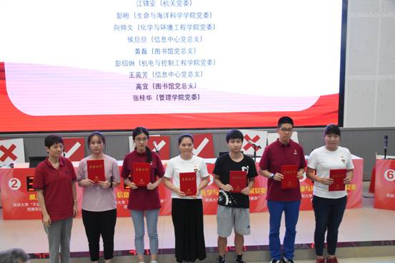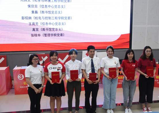 信息中心党总支书记邱妙芳为“党建知识标兵”颁奖