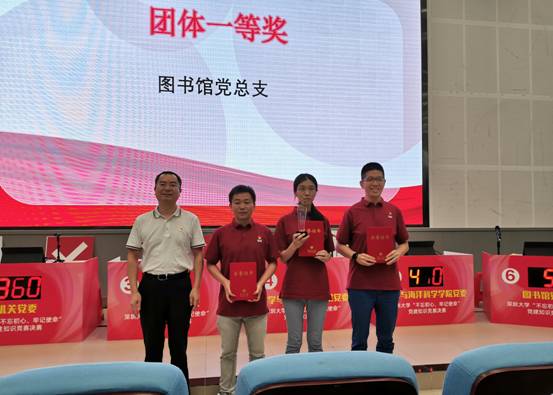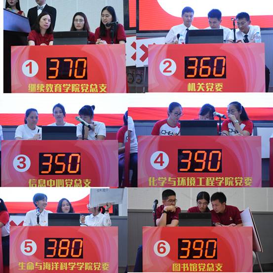 经过五个环节的实力比拼,图书馆党总支代表队荣获团体一等奖,化学与环境工程学院党委代表队、生命与海洋科学学院党委代表队荣获团体二等奖,信息中心党总支代表队、继续教育学院党总支代表队、机关党委(安全保卫部)代表队荣获团体三等奖。初赛成绩前十名的优秀个人获得“党建知识学习标兵”称号。