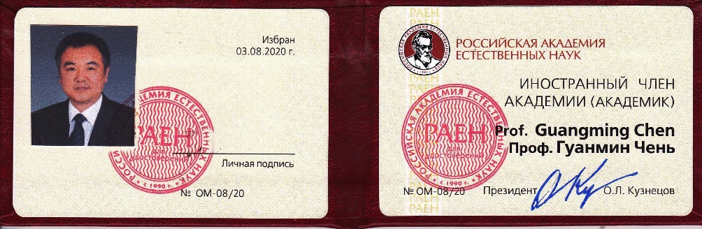 近日,俄罗斯自然科学院(Russian Academy of Natural Sciences,RAEN)向我校材料学院陈光明教授发来贺信,祝贺他当选为俄罗斯自然科学院外籍院士。