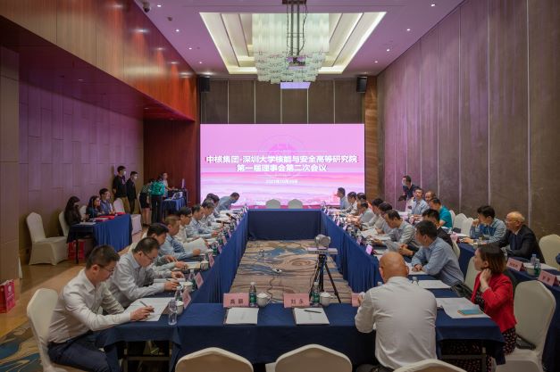 10月28日下午,深大-中核核能与安全高等研究院(以下简称“核高院”)第一届理事会二次会议于在深圳召开。中国核工业集团有限公司党组成员、副总经理、深大-中核核能与安全高等研究院理事会理事长曹述栋,我校党委书记、校长、深大-中核核能与安全高等研究院理事会副理事长李清泉,副校长张学记,中共深圳市委军民融合发展委员会副主任马新宇,中国核动力研究设计院(以下简称“核动力院”)党委委员、顾问周定文,副总工程师王晓敏,中国原子能科学研究院(以下简称“原子能院”)副院长陈东风,哈尔滨工程大学党委常委、副校长高晚欣,深圳中核集团有限公司董事长、党委书记李志煌等出席会议。曹述栋主持会议。