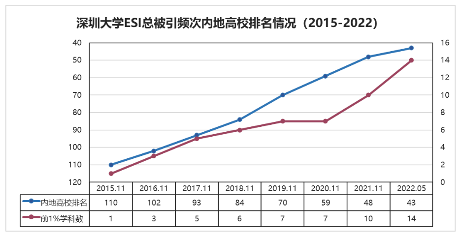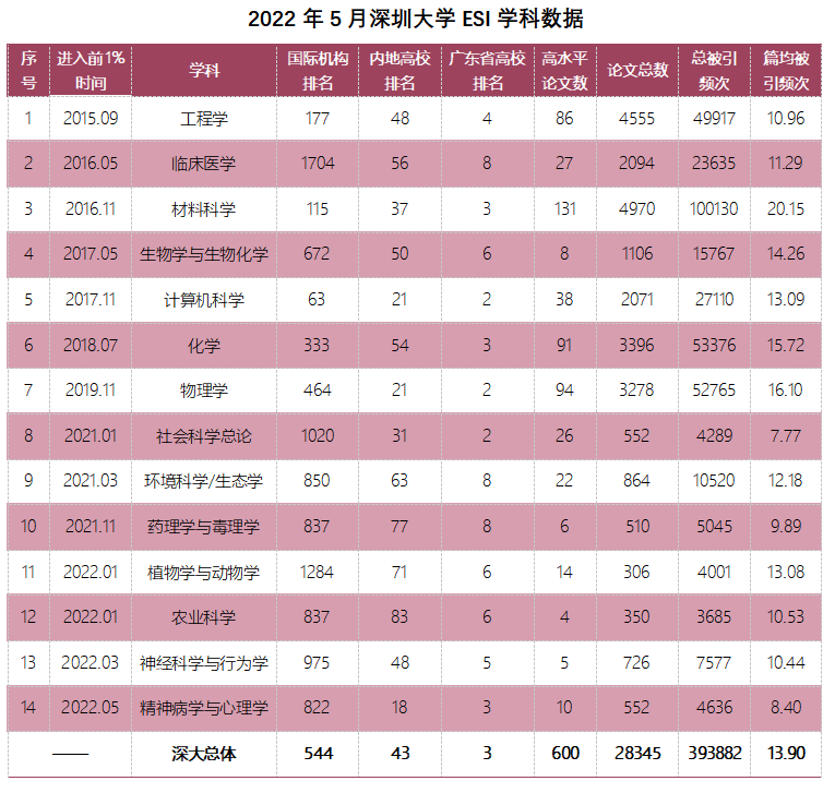 vsportESI“工程学”学科进入全球排名前1‰ “精神病学与心理学”学科成为深大第14个ESI全球前1%学科