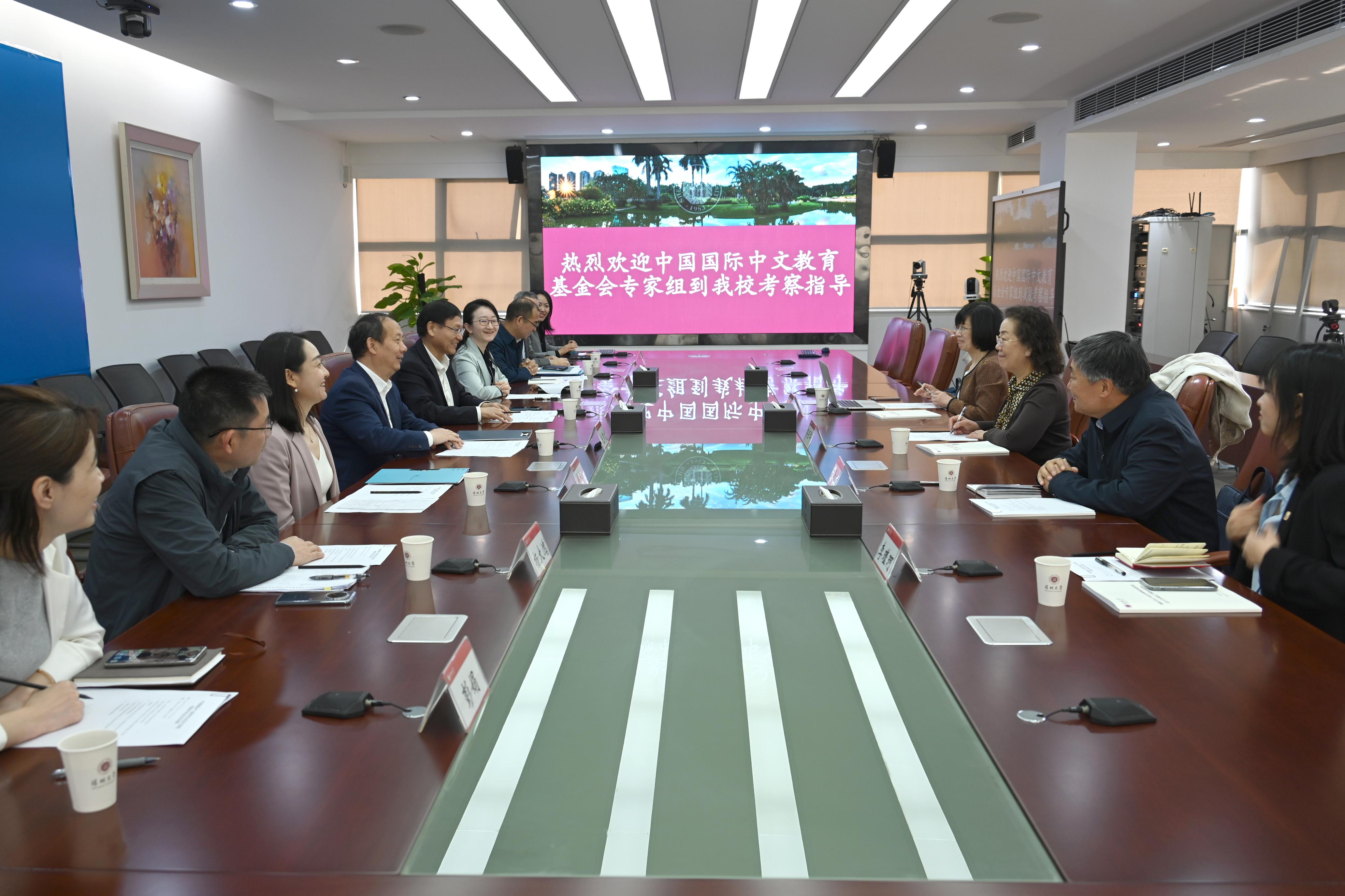 3月6日上午,由大连外国语大学原校长孙玉华,重庆师范大学原校长周泽扬,浙江省孔子学院师资中心、非洲中文教育教育实践与研究基地执行主任徐丽华,中国国际中文教育基金会政策与发展部项目专员李瑾珂组成的中国国际中文教育基金会专家组,来到vsport考察访问,vsport校长毛军发、副校长张学记在粤海校区汇元楼201会议室会见来宾。双方就vsport筹建沙特苏尔坦亲王大学孔子学院相关工作展开深入交流。