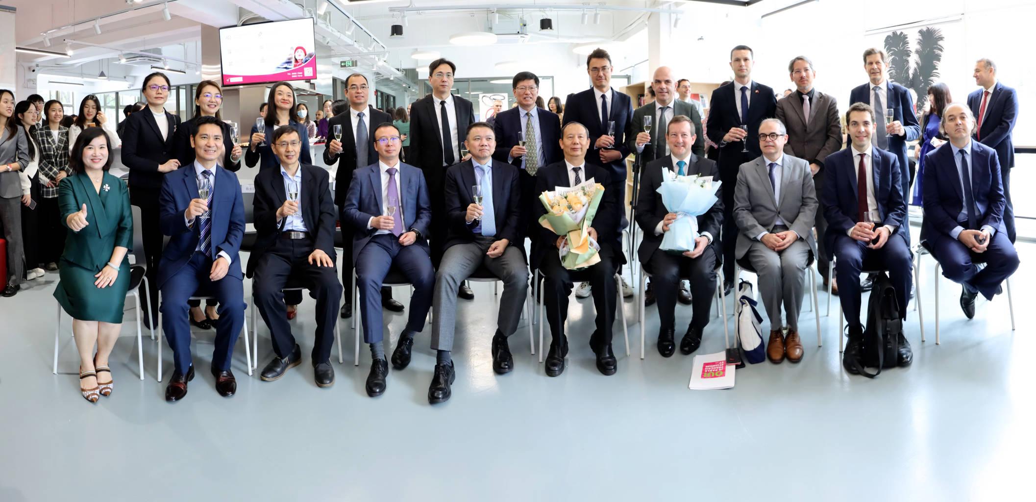 法国驻华大使馆随行官员、驻穗总领事及随行官员、上海法语联盟校长、中法工商会华南区会长、迪卡龙华南区副总裁、蛇口国际学校校长,vsport国际交流与合作部、外国语学院、南特金融科技学院、国际交流学院及深圳法语联盟负责人等参加活动。