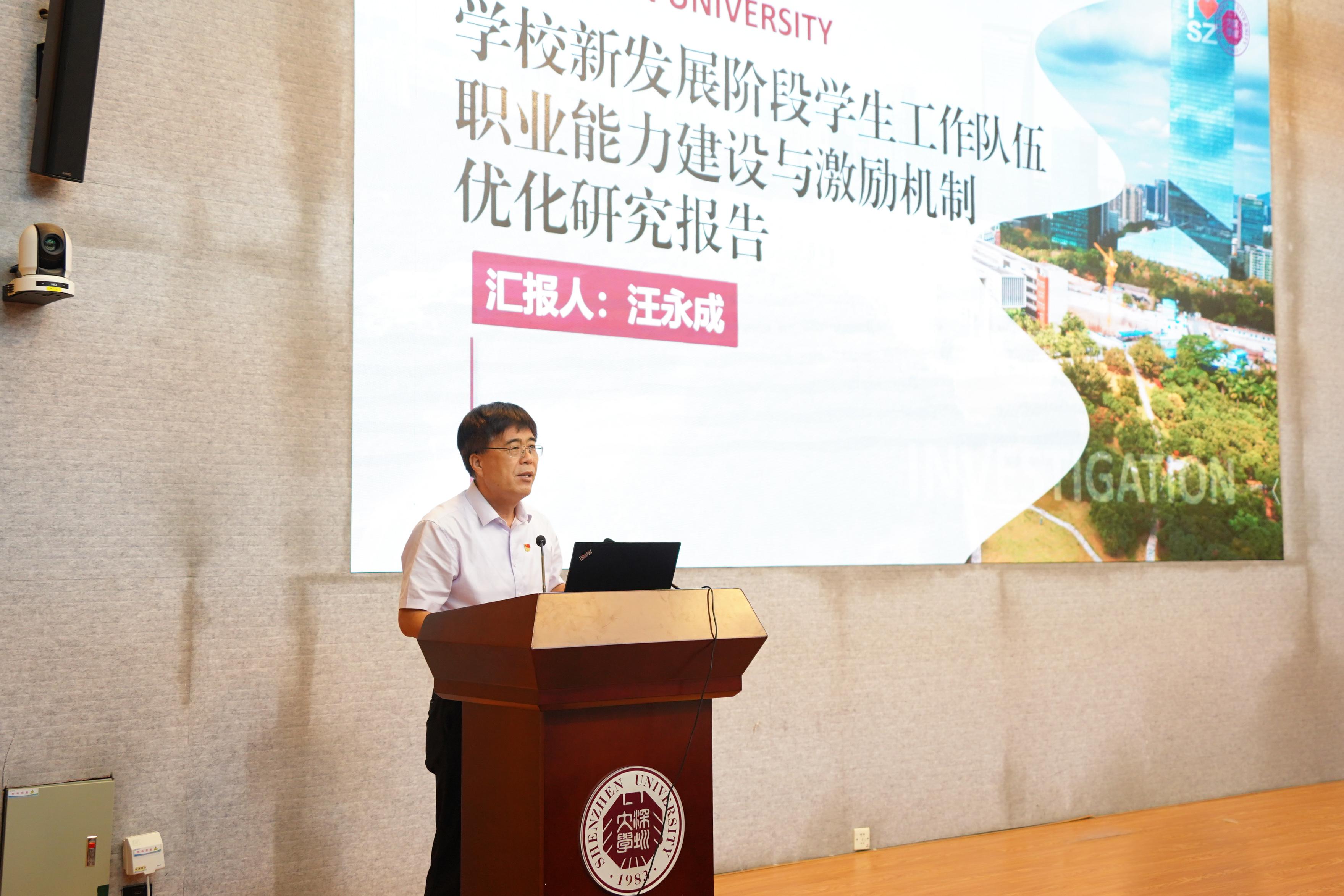 校长毛军发简要通报学校主题教育调查研究开展情况。自4月12日学校主题教育开展以来,在省委第十九巡回指导组的精心指导下,学校党委认真学习贯彻习近平总书记系列重要讲话精神,紧紧围绕党中央、省委、市委关于开展主题教育和调查研究的部署要求,一体推进理论学习、调查研究、推动发展、检视整改,推动主题教育取得实实在在的成效。学校党委坚持把开展调查研究作为发现问题、研究问题、解决问题的重要途径,专门研究制定《在全校深入开展调查研究工作方案》和《vsport校领导 党委常委开展调查研究工作安排》,大兴调查研究之风,聚焦制约学校高质量发展的短板瓶颈和薄弱环节,沉到一线开展对策性调研、解剖式调研、督查式调研,形成了一批调研成果。
