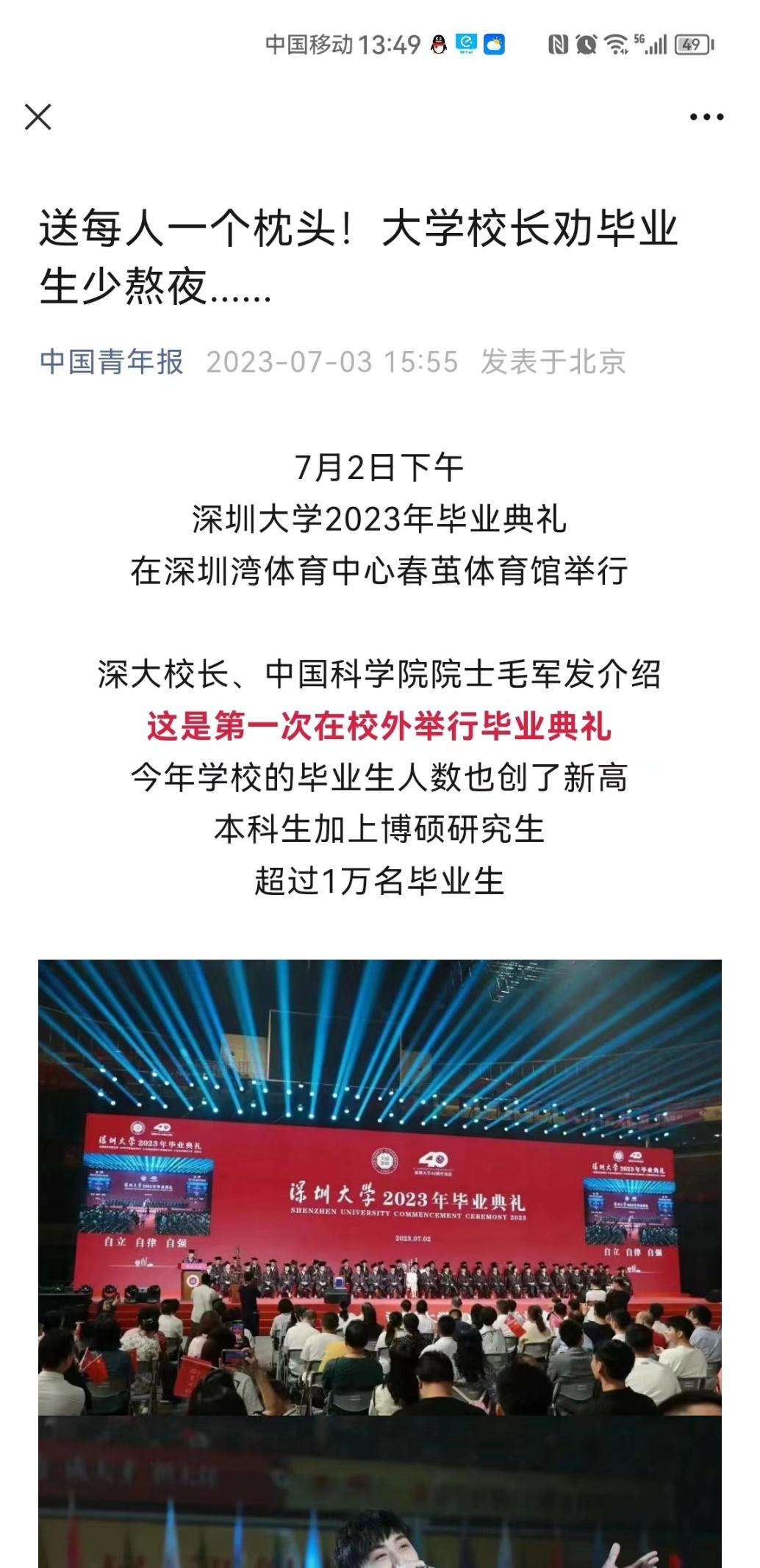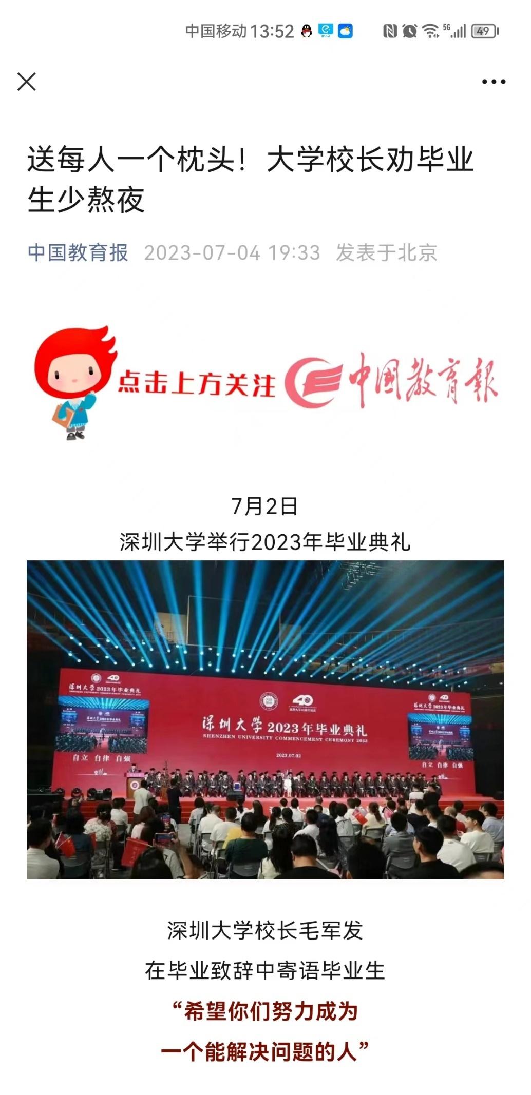 【人民日报】送每人一个枕头!大学校长劝毕业生少熬夜