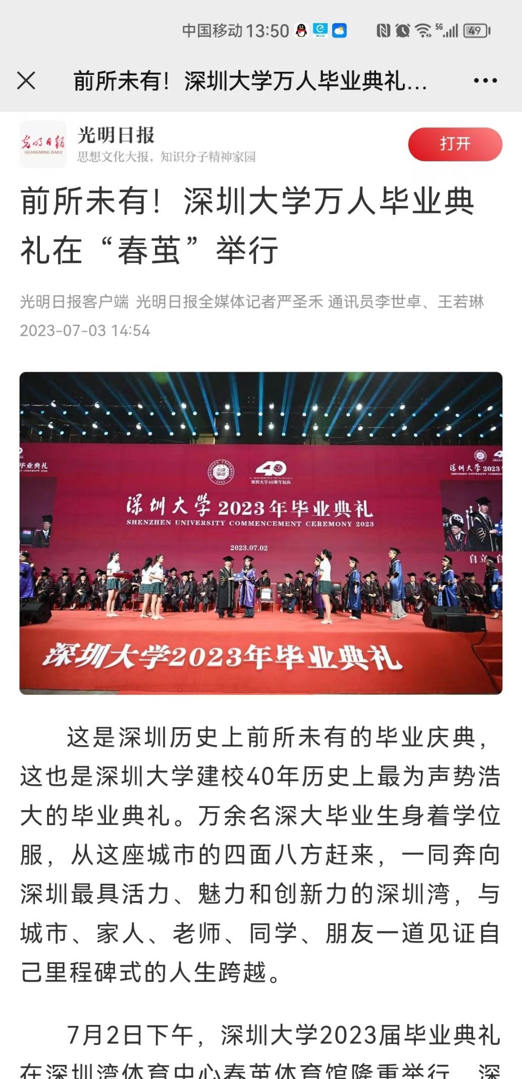 【中国日报推特垂直账号】Shenzhen University held a history-making commencement ceremony on July 2