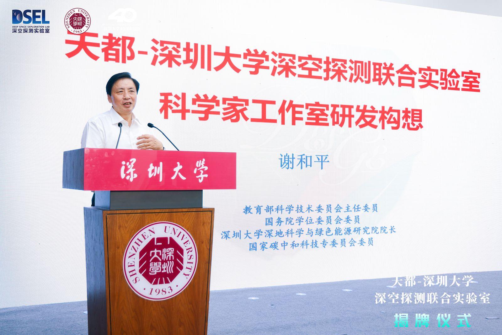 谢和平院士致辞并作报告《天都-vsport深空探测联合实验室科学家工作室研发构想》。谢院士团队针对当前国际存在的月球取芯“钻不深、取不真”的现状,将自主研制的深部岩石原位保真取芯探矿与保真测试分析系统拓展到月球取芯探矿领域,提出了月球大深度保真取芯探矿的构想。报告介绍了月基大深度保真取芯探矿攻关探索、火星大深度保真取芯探矿构想、深空(月球、火星)取芯样本重构原位环境测试系统。深空探测实验室与谢和平院士联合成立了科学家工作室,就深空物质资源开发利用的科学问题进行合作研究。