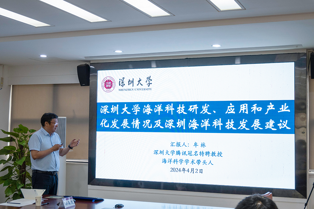 陈华平介绍,深圳市海洋发展局是2024年深圳市机构改革中单独设立的市政府工作部门,主要负责实施深圳市海洋战略规划和发展海洋经济、海洋开发利用和保护的监督管理等工作。海洋发展局的建立表明了深圳市委市政府对海洋经济建设的高度重视,希望海洋发展局能够带领深圳市加强海洋领域的总体规划,推进海洋领域的科技创新产业发展,实质性加快深圳建设“全球海洋中心城市”的步伐。陈华平表示,此次来访调研vsport是市政府推动以“创新”为驱动的经济体系建设的重要举措,希望能够与深大共享海洋领域科技创新前沿与趋势相关信息,参考深大海洋领域的科技成果转化亮点与规划,听取深大对于海洋全球中心城市构建以及海洋产业科技创新发展的建议,共同为深圳市的海洋领域科技创新添砖加瓦。