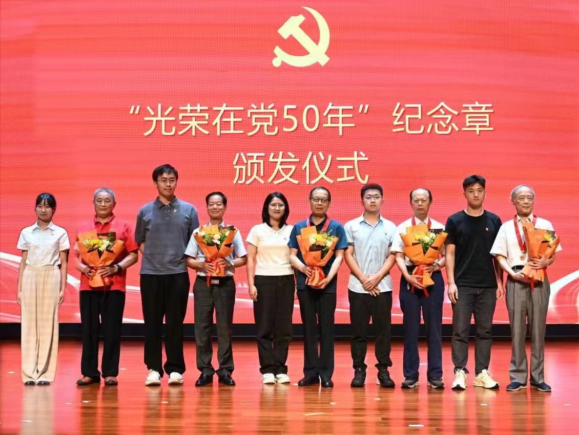 宋为民、杜与钦、杨勤劳、段荣鑫和潘海东等13名老党员获“光荣在党50年”纪念章。李清泉为在场老党员颁发奖章,青年党员代表向老党员鲜花。