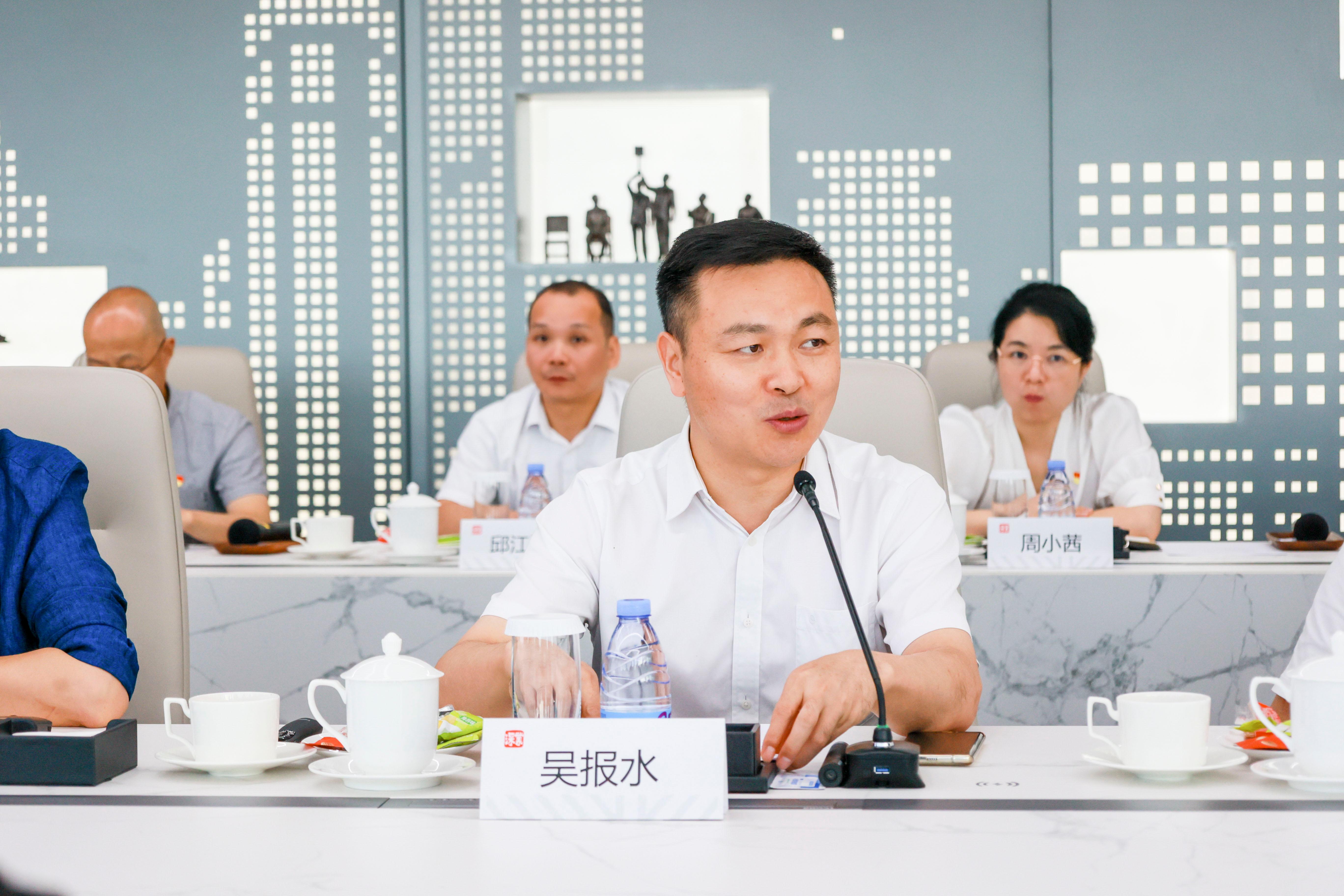 座谈会上,吴报水表示,深业集团的党建工作是国企党建的一面旗帜,更是一个闪亮的品牌。党建与科技、党建与文化的融合方面令人耳目一新,有互动性、参与感,工作方法新颖;党建带团建的方式有特色,与属地共建党群服务中心的经验充分融合了资源,达到了“1+1>2”的效果。他表示,荔园党建工作坊是深大的党建品牌活动,搭建了一个开放包容的学习交流平台,希望学校以此次走访为契机,学习先进的党建工作经验,结合学校工作实际进一步促进党建与业务双融双促,也希望学校充分发挥学科和人才优势,与企业加强党建合作。