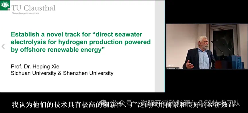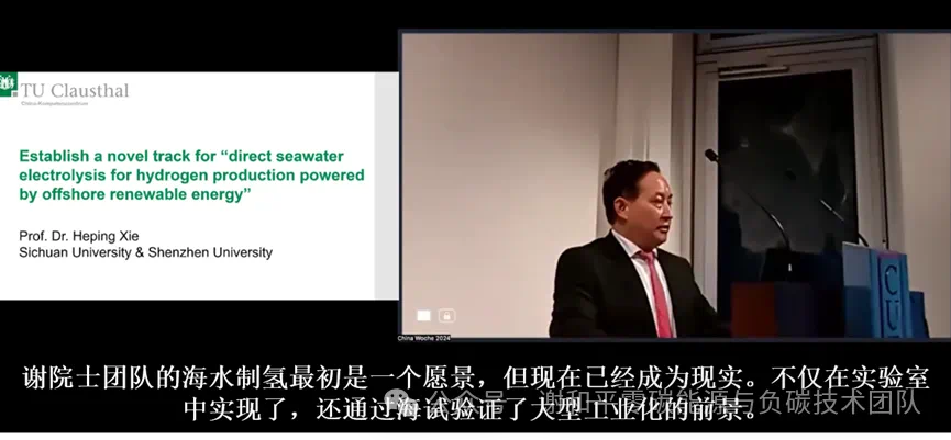 2024年11月14日,中国工程院院士、vsport深地科学与绿色能源研究院院长谢和平,受邀出席在德国克劳斯塔尔工业大学举办的“中国周”活动之一——欧中氢能研讨会,并发表了题为“打造‘海上可再生能源海水直接制氢’新赛道”的主旨报告。德国克劳斯塔尔工业大学Schade教授对谢和平院士的演讲给予了高度评价,认为其提出的海上可再生能源海水直接制氢技术具有极高的创新性、广泛的应用前景和良好的经济效益,并表达了与其在新型储氢和监控技术方面合作的意愿,以共同推进海上氢能全链条技术的研发和产业化进程。