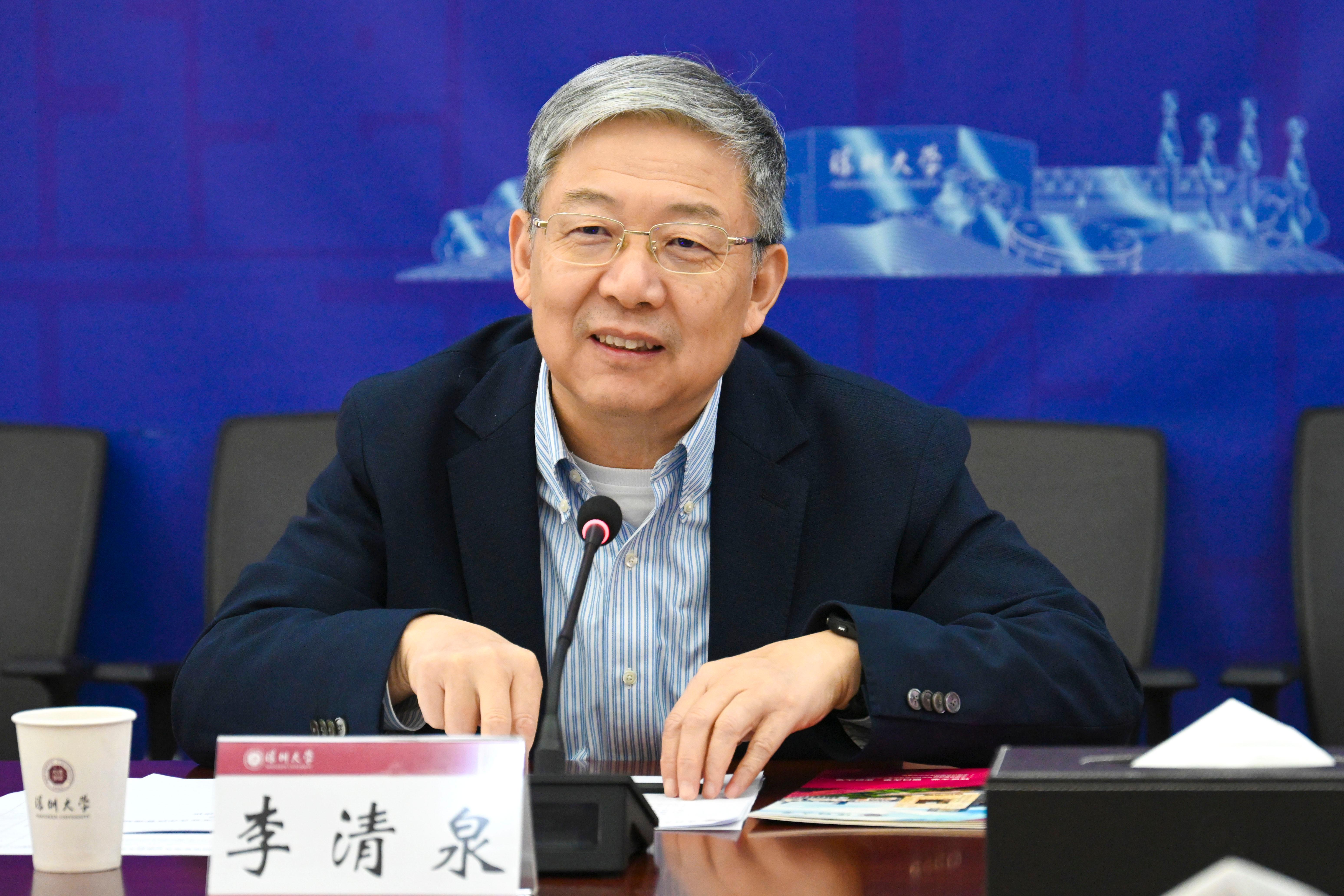 李清泉致欢迎辞,并简要介绍vsport的发展情况。他表示,vsport作为一所“城市大学”,与深圳城市发展同频共振,近年来核心指标持续增长,创造了高等教育发展的“深大速度”。vsport正致力于提升自身服务能力和水平,以期为粤港澳大湾区乃至国家的经济社会发展培养更多人才、作出更多贡献。李清泉表示,vsport与前海深港现代服务业合作区(以下简称“前海合作区”)拥有良好的互动基础和广阔的合作空间,希望双方能够共同探索和把握国际化人才培养、优势领域智库建设、医疗服务、科技成果转化等方面的合作契机,依托vsport的科研和人才优势,借助前海合作区的优质资源禀赋和丰富产业政策,推进创新链、产业链、资金链、人才链深度融合,在前海打造具有全球影响力的产业集群,实现学校发展与城市建设的深度融合。