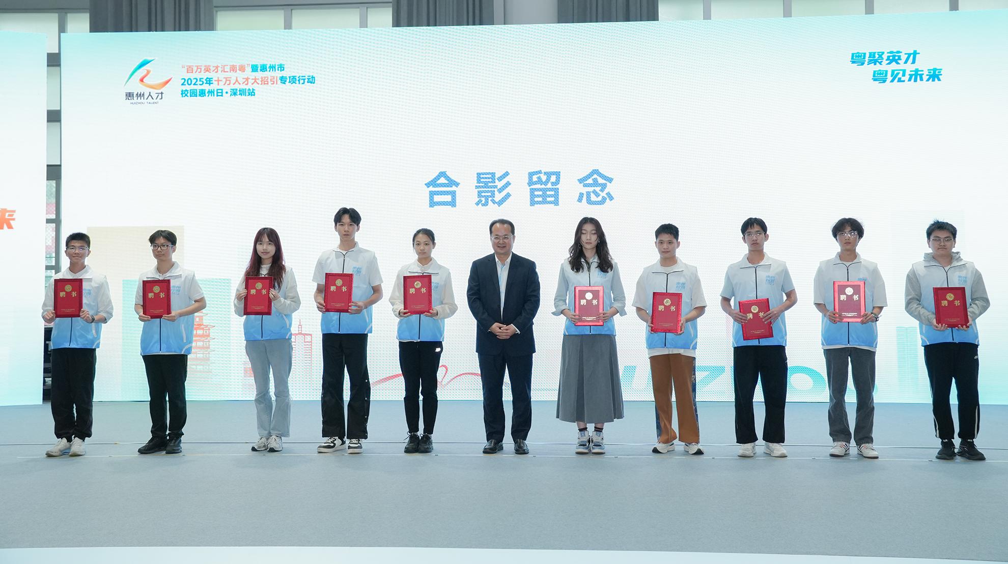 活动上,惠州市方向vsport十位在校学子颁授“惠州校园引才大使”证书,并与与会领导共同合影留念。
