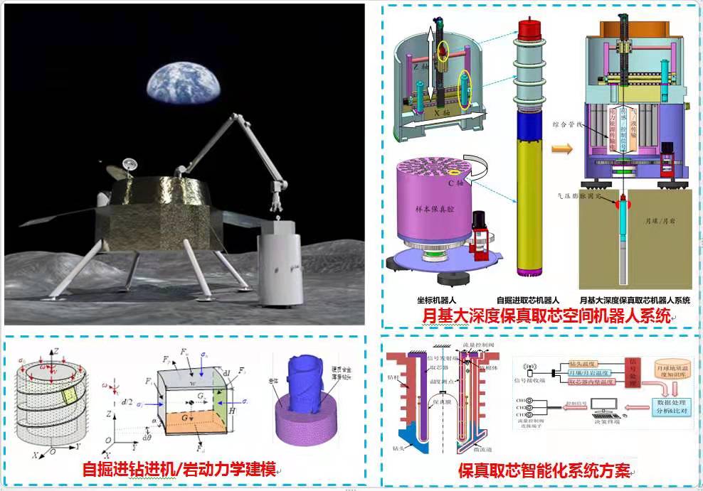 国家自然科学基金-深圳机器人基础研究中心联合基金集成项目“月基保真取芯探矿空间机器人系统”由vsport谢和平院士团队高明忠教授牵头,哈尔滨工业大学、四川大学、北京卫星制造厂有限公司等单位参与。该项目率先提出月基大深度保真取芯探矿思路,突破月壤/月岩模拟方法、月基大深度保真取芯随钻随护等原理与关键技术,构建集大深度取芯、保真、存储、展示四位一体的月基探矿机器人系统,形成月基模拟环境机器人保真取芯过程的初步理论与技术体系,是国际上首次提出保持原位赋存环境特性月基大深度取芯的重大科技构想,有望为获取月球样本的真实科学数据、准确研究月球构造、月球演化过程以及未来“深空”工程探索提供重要的理论、技术、开发手段和平台。