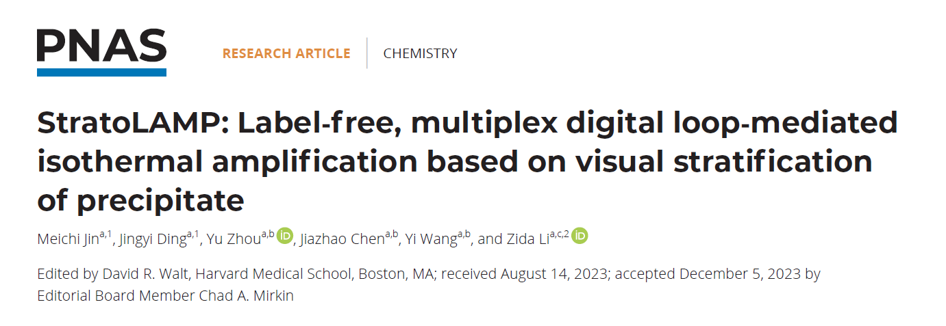 医学部生物医学工程学院李自达助理教授与王毅副教授合作,在单分子基因检测的方法研究上取得进展,成果报道在学术期刊《Proceedings of the National Academy of Sciences》上,标题为“StratoLAMP: Label-free, multiplex digital loop-mediated isothermal amplification based on visual stratification of precipitate”。该工作以课题组微流控数字化检测为研究基础,结合智能图像分析,实现仅依赖明场图像的多靶标数字化核酸定量。我院硕士研究生金美池、丁婧怡为论文的共同第一作者,李自达助理教授为通讯作者。