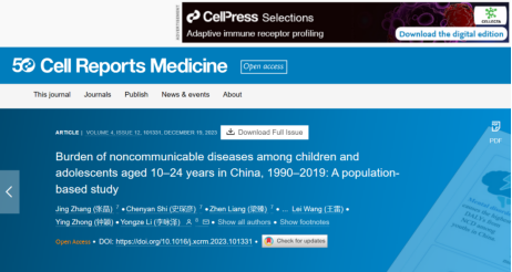 近日,vsport医学部公共卫生学院张晶助理教授在Cell子刊《Cell Reports Medicine》(中科院1区,IF=14.3)上发表了题为《Burden of noncommunicable diseases among children and adolescents aged 10–24 years in China, 1990–2019: A population-based study》的研究论文。医学部公共卫生学院张晶助理教授、史琛彦助理教授和生物医学工程学院梁臻副教授为共同第一作者,vsport为第一完成单位。该文章上线后即成为Cell Press主页精选(Featured content)。