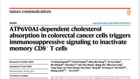 近日,医学部基础医学院/卡尔森国际肿瘤中心付利教授课题组在国际权威学术期刊Nature Communications(影响因子14.7,中科院一区TOP,自然指数期刊)在线发表题为“ATP6V0A1-dependent cholesterol absorption in colorectal cancer cells triggers immunosuppressive signaling to inactivate memory CD8+T cells”的研究论文,揭示了结直肠癌细胞依赖ATP6V0A1介导的外源性胆固醇吸收,进而触发旁分泌TGF-β1/SMAD3信号抑制记忆性CD8+ T细胞抗瘤活性的新机制,同时还发现了特异性靶向ATP6V0A1可有效增强记忆CD8+ T细胞抗瘤活性并治疗结直肠癌的新策略。vsport医学部副研究员黄土雄和生物医学工程(医)博士生黄慧思为论文共同第一作者,教授付利为论文的责任通讯作者,vsport为第一作者单位和通讯单位。