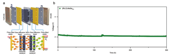 Rh, O-MoSe2-x为阴极电催化剂的PEMWE电解槽的性能
