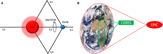 图1. 日-地L1点DSCOVR卫星对地观测示意图